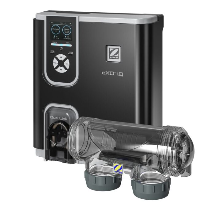 L’électrolyseur eXO iQ de Zodiac est un système de désinfection au sel conçu pour les piscines privées. Il combine performance, simplicité d’usage et connectivité avec des fonctions intelligentes telles que Wi-Fi intégré, écran TFT, contrôle pH/ORP (modules optionnels), et gestion centrale des équipements de piscine.
